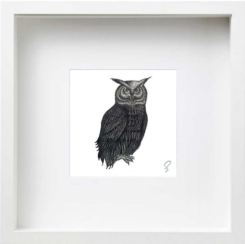 “Owl” Charcoal Drawing 23x23cm by Zak Kirakosian